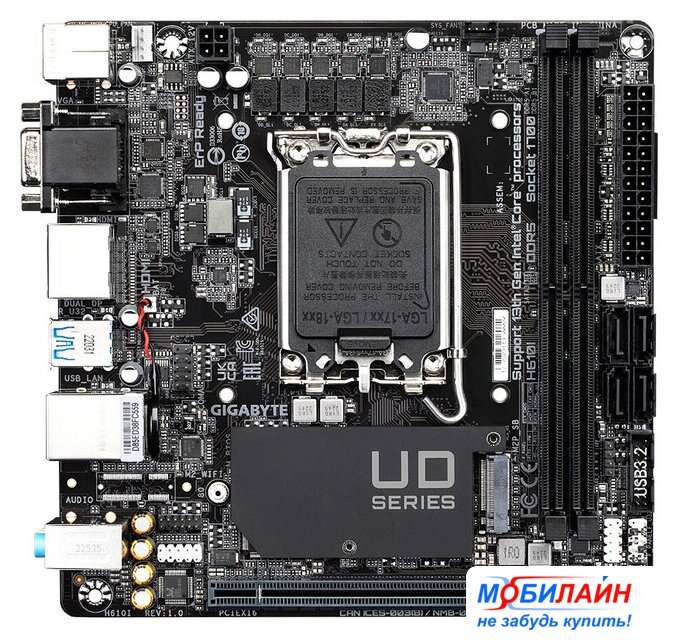 Mini-ITX, сокет Intel LGA1700, чипсет Intel H610, память 2xDDR4 до 3200 МГц, слоты: 1xPCIe x16 4.0, 1xM.2