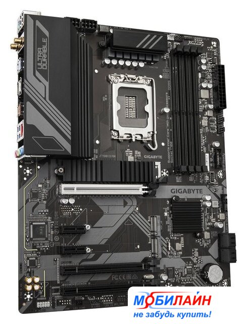 mATX, сокет Intel LGA1700, чипсет Intel B760, память 4xDDR5 до 7800 МГц, слоты: 1xPCIe x16 5.0, 1xPCIe x4, 3xM.2, 802.11ax (Wi-Fi 6E)+Bluetooth 5.3, 12+1+1 фаз питания