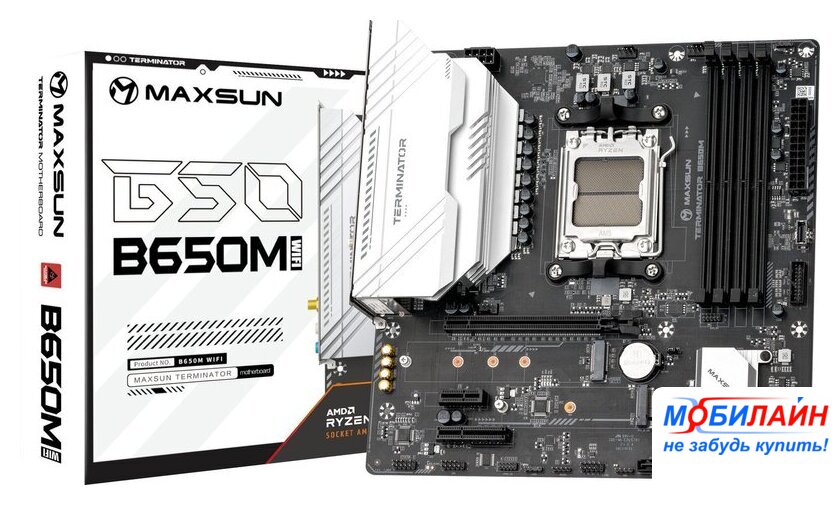 mATX, сокет AMD AM5, чипсет AMD B650, память 4xDDR5 до 7600 МГц, слоты: 1xPCIe x16 4.0, 1xPCIe x1, 2xM.2, 802.11ax (Wi-Fi 6)+Bluetooth 5.3, 5+2+2 фаз питания