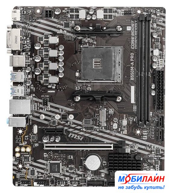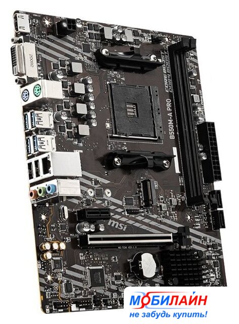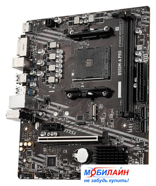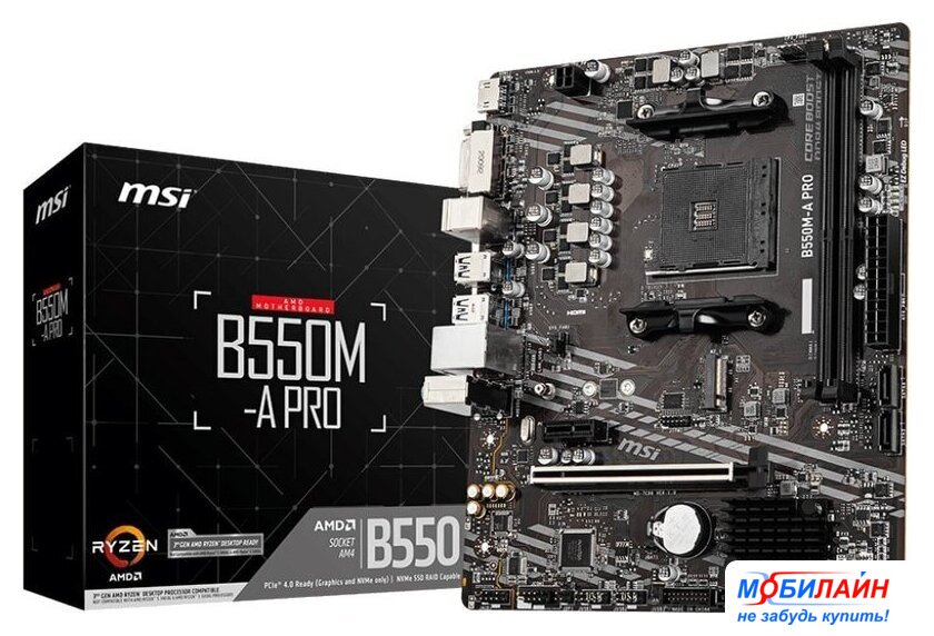 mATX, сокет AMD AM4, чипсет AMD B550, память 2xDDR4 до 4733 МГц, слоты: 1xPCIe x16 4.0, 1xPCIe x1, 1xM.2