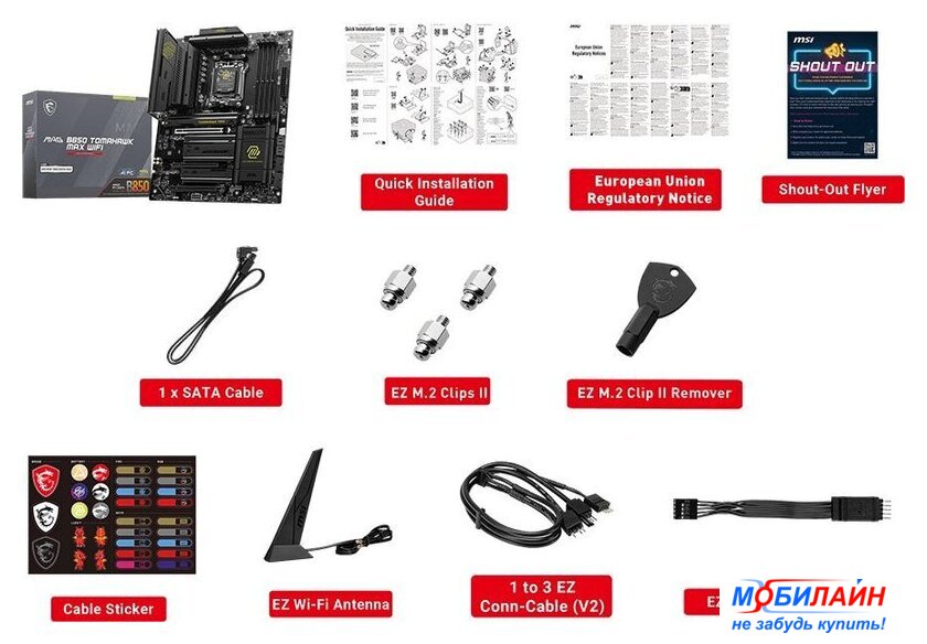 | Комплектация | - кабель SATA- EZ Wi-Fi антенна - EZ кабель передней панели- 1-3 EZ кабель - 3 винта EZ M.2 Clip II- EZ M.2 Clip II экстрактор- набор стикеров- документация |