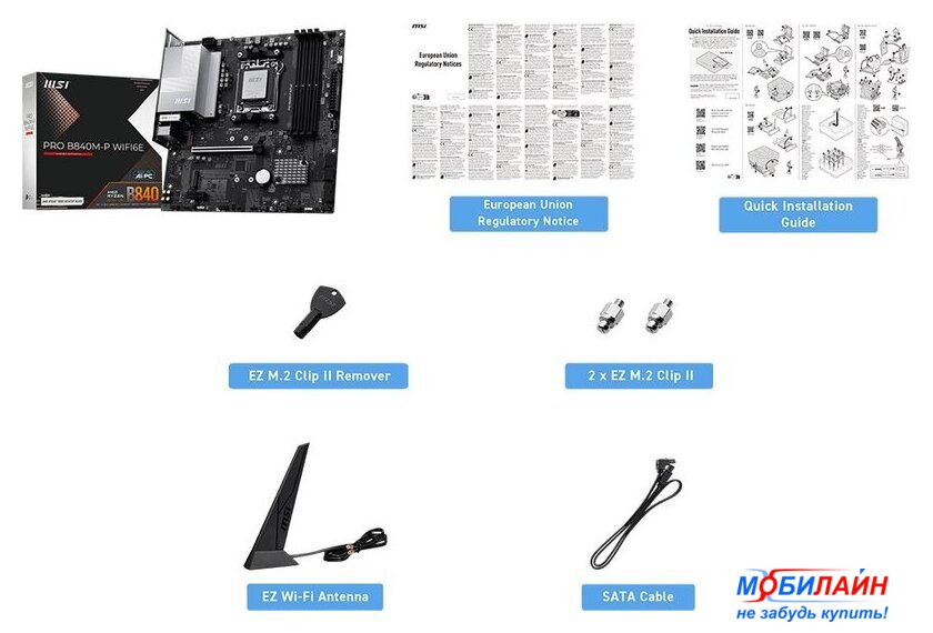 | Комплектация | - кабель SATA- EZ Wi-Fi антенна - 2 винта EZ M.2 Clip II- EZ M.2 Clip II экстрактор- документация |