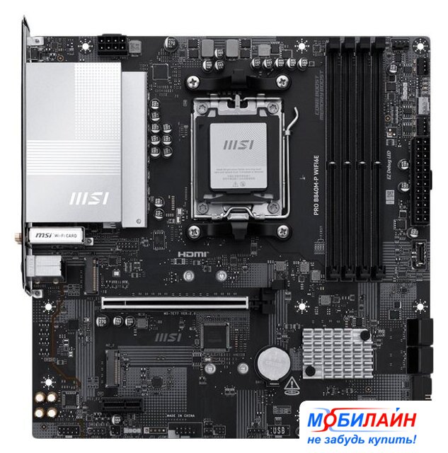 mATX, сокет AMD AM5, чипсет AMD B650, память 4xDDR5 до 7600 МГц, слоты: 3xPCIe x16 4.0, 2xM.2, 802.11ax (Wi-Fi 6)+Bluetooth 5.2