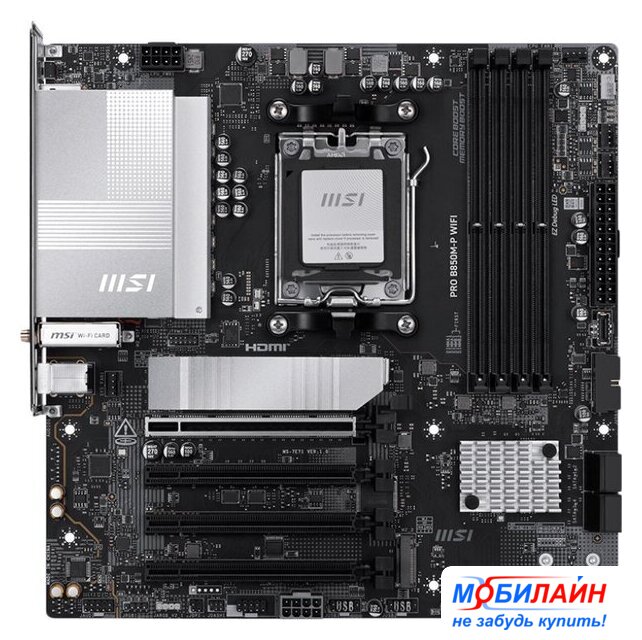 mATX, сокет AMD AM5, чипсет AMD B650, память 4xDDR5 до 8000 МГц, слоты: 2xPCIe x16 4.0, 2xM.2, 802.11ax (Wi-Fi 6E)+Bluetooth 5.2, 12+2+1 фаз питания