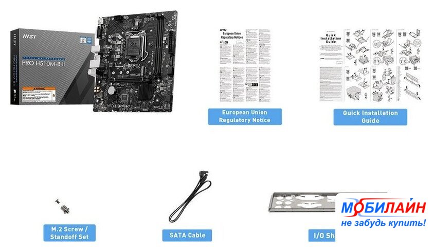 | Комплектация | - кабель SATA- винт со стойкой для M.2 - рамка разъемов задней панели- документация |
