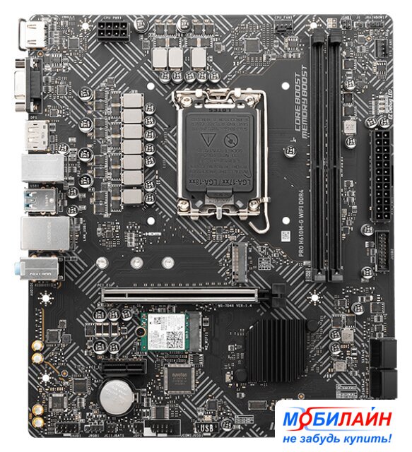 mATX, сокет Intel LGA1700, чипсет Intel H610, память 2xDDR4 до 3200 МГц, слоты: 1xPCIe x16, 1xPCIe x1, 1xM.2