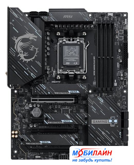 ATX, чипсет AMD B850, память 4xDDR5 до 8000 МГц, слоты: 2xPCIe x16 5.0, 5xM.2, 802.11be (Wi-Fi 7)+Bluetooth 5.4, 16+2+2 фаз питания