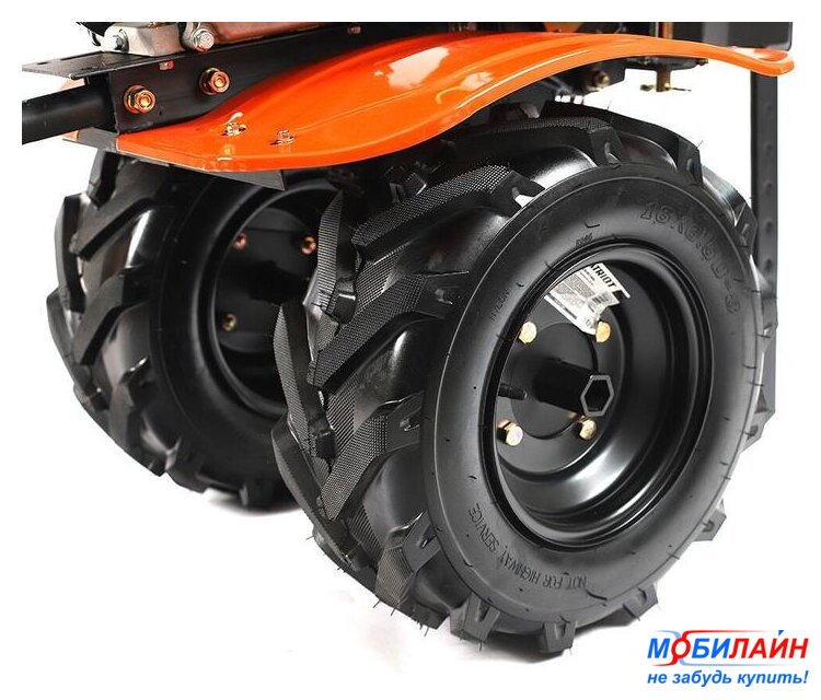 Комплект поставки | - Мотоблок;- 6 групп по 4 ножа - 3 левых фрезы, 3 правых фрезы;- Пневматические колеса P16x6.50-8D-1 протектор X-Drive;- Сошник;- Упаковка. |