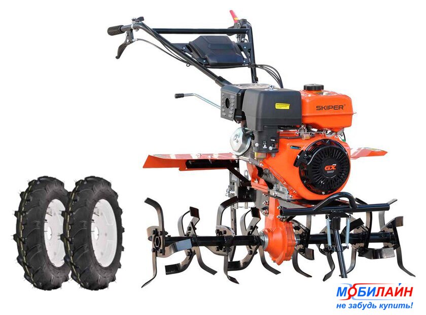 Комплект поставки | 1. Мотокультиватор2. Ручка3. Планка крепления щитков задняя.4. Заглубитель (сошник).5. Удлинитель рычага переключения передач.6. Поворотный кронштейн рукоятки.7. Ножи для фрез.8. Валы для фрез.9. Защитные щитки основные.10. Две планки крепления щитков задние.11. Кронштейн сошника.12. Набор инструмента и штырь крепления кронштейна сошника.13. Два набора крепежных изделий.14. Руководство по эксплуатации и гарантийный талон.15. Колеса 19Х7-8 |