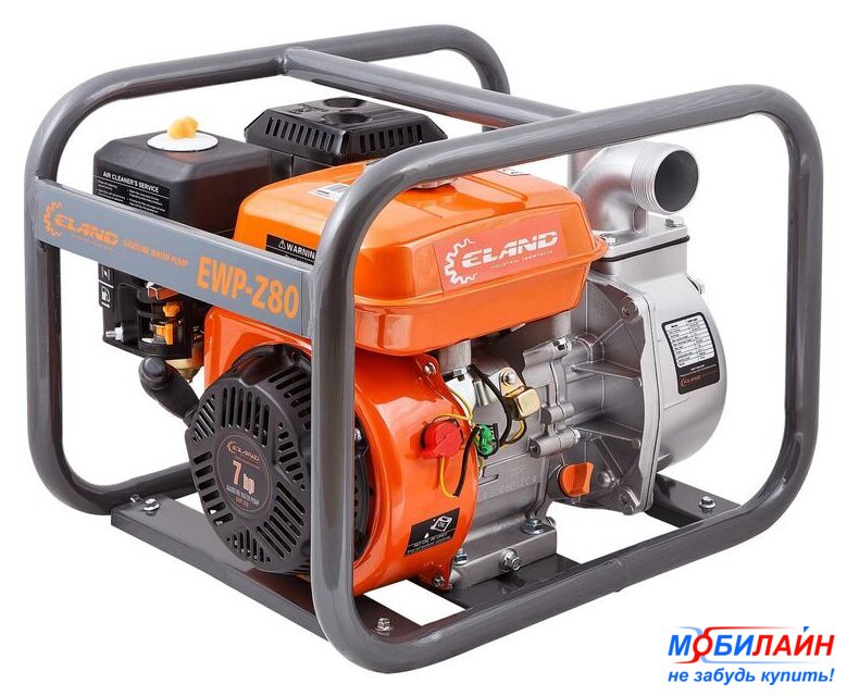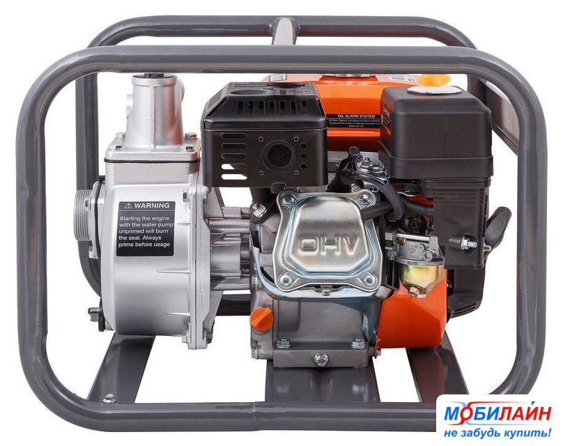 для слабозагрязненной воды, бензиновый двигатель, мощность 5.2 кВт, производительность 1000 л/мин, высота подъема 28 м, бак 3.6 л, патрубки 80/80 мм