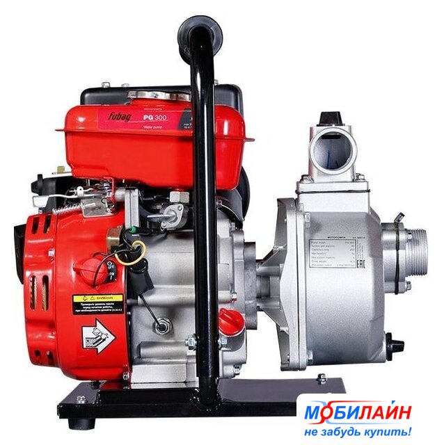 для чистой воды, бензиновый двигатель, мощность 5.1 кВт, производительность 1000 л/мин, высота подъема 32 м, бак 3.6 л, патрубки 80/80 мм