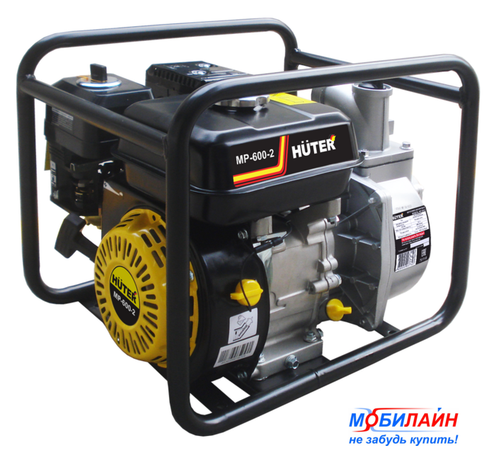 для чистой воды, бензиновый двигатель, мощность 5.1 кВт, производительность 600 л/мин, высота подъема 32 м, бак 3.6 л, патрубки 50/50 мм