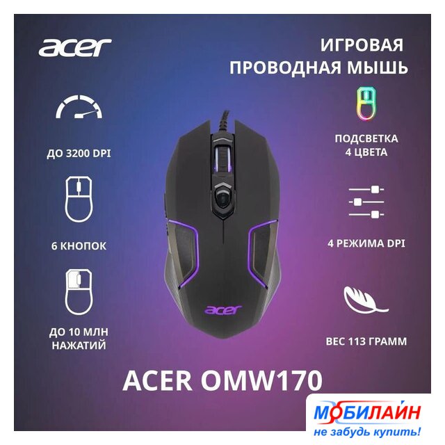 полноразмерная игровая мышь для ПК/для компьютеров Apple, радио, сенсор оптический 12000 dpi, 6 кнопок, колесо с нажатием, цвет сиреневый
