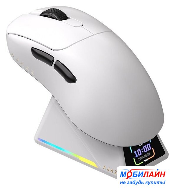 полноразмерная игровая мышь, проводная USB Type-A/беспроводная Bluetooth/беспроводная радио, сенсор оптический 30000 dpi, 5 кнопок, колесо с нажатием, цвет белый