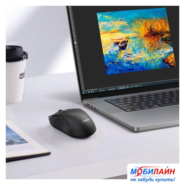 мышь, радио, USB, сенсор оптический 1600 dpi, 3 кнопки, колесо с нажатием, цвет черный