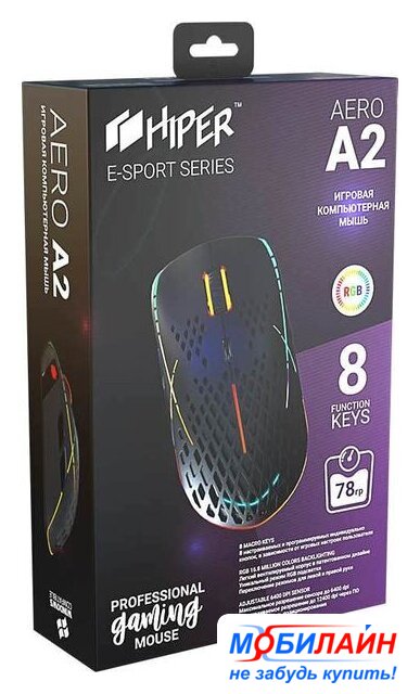полноразмерная игровая мышь, проводная USB Type-A, сенсор оптический 8000 dpi, 7 кнопок, колесо с нажатием, цвет черный