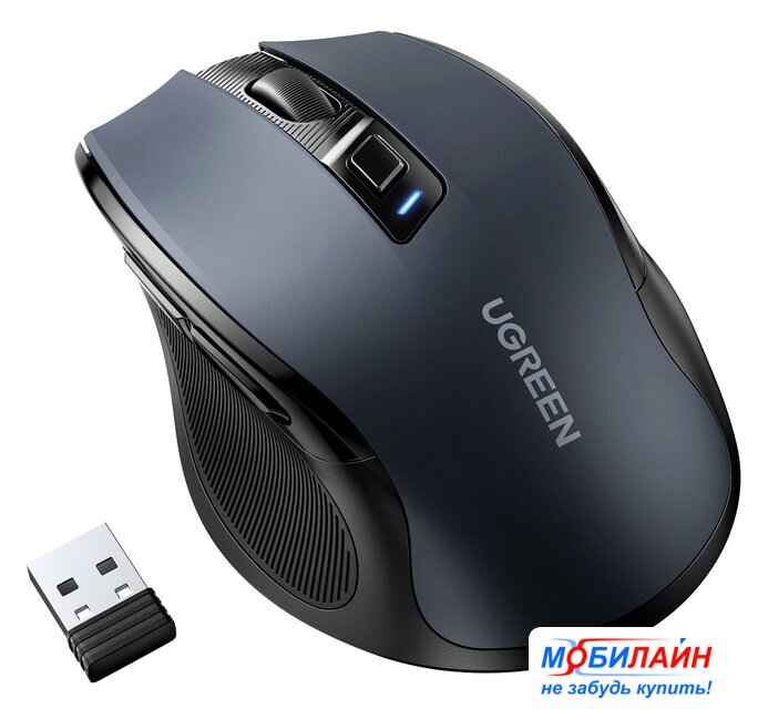 полноразмерная мышь для ПК, беспроводная радио/Bluetooth, сенсор оптический 1200 dpi, 3 кнопки, колесо с нажатием, цвет черный/синий