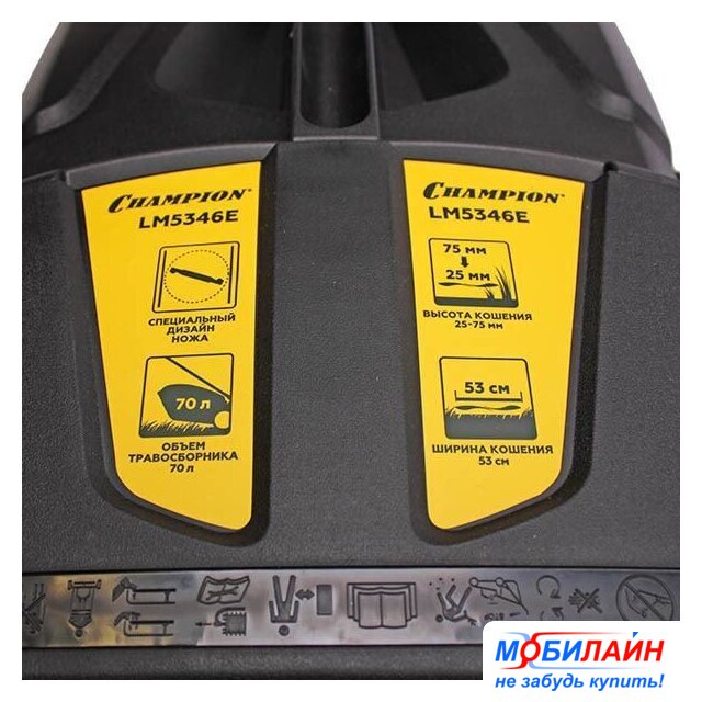 | Комплектация | - Газонокосилка;- Руководство по эксплуатации;- Травосборник;- Заглушка;- Желоб бокового выброса;- Зарядное устройство;- Аккумулятор. |