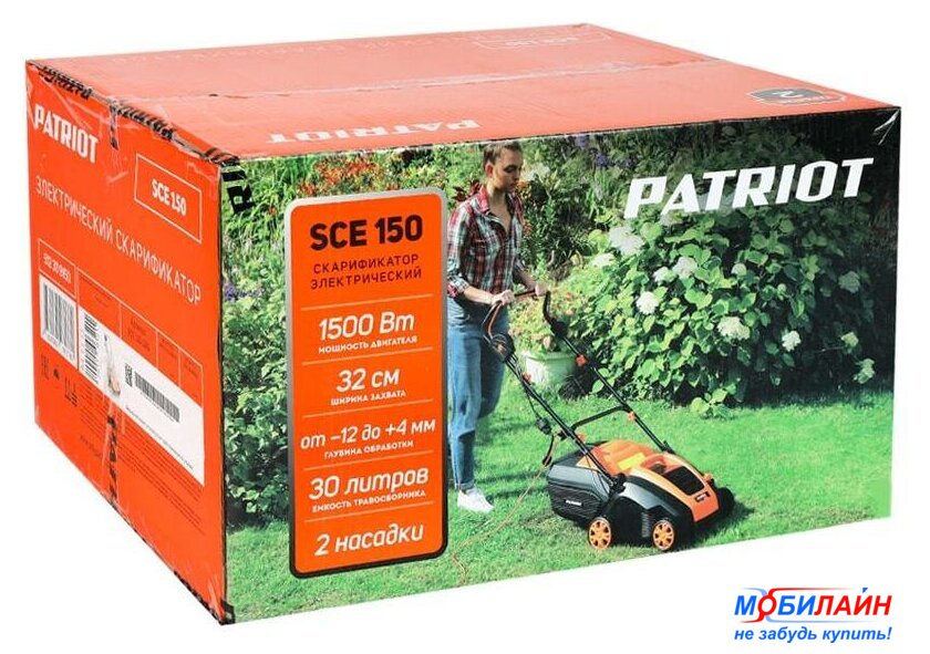 скарификатор, электрический двигатель 1500 Вт, ширина скашивания: 32 см, мягкий травосборник 35 л, корпус: пластик
