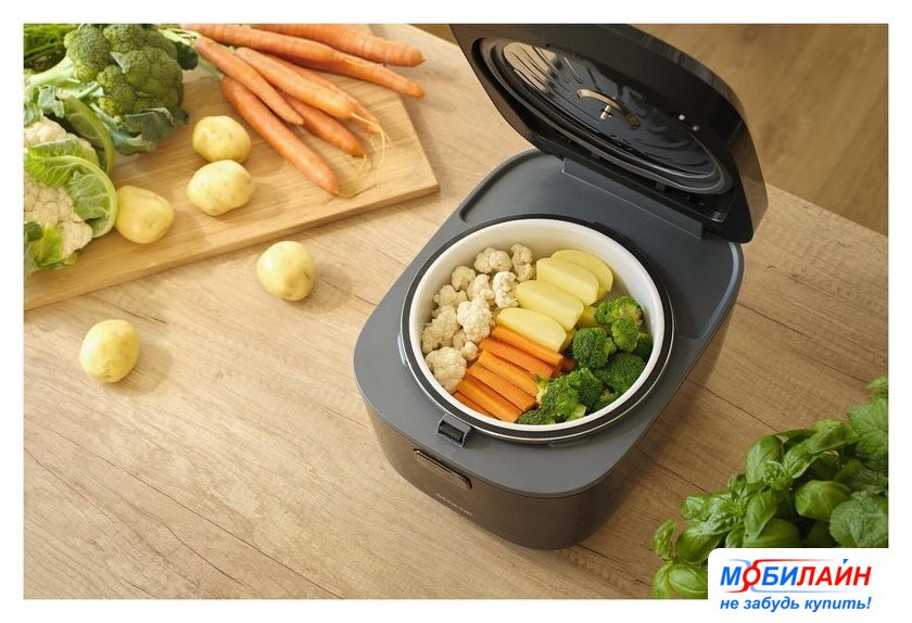 мультиварка-скороварка, объем 5.5 л, покрытие чаши антипригарное, мощность 1000 Вт, 14 программ, пароварка