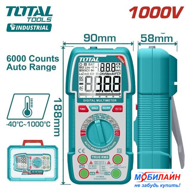 мультиметр, DC 1000 В/20 А, AC 700 В/20 А, ЖК дисплей, прозвонка, подсветка