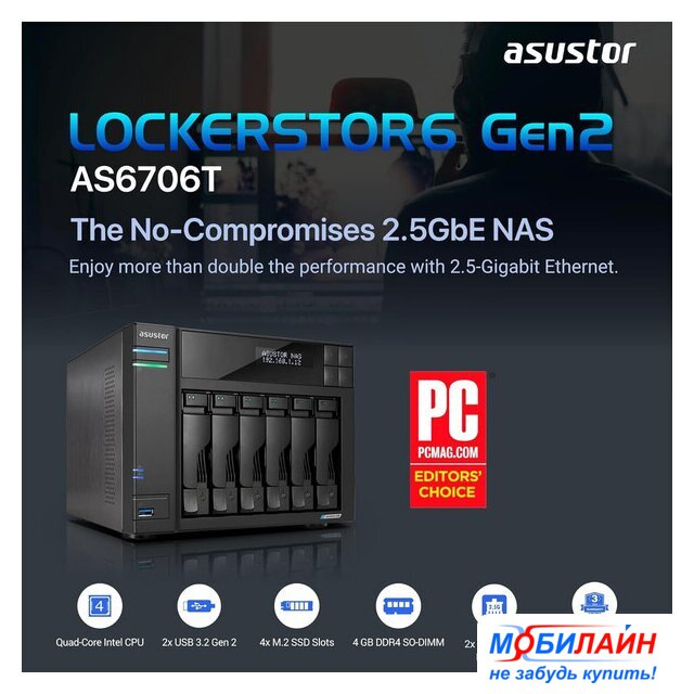 4 x 3.5"/2.5"/M.2, RAID 1/5/6/10/JBOD, hot swap, охлаждение воздушное, LAN 2x 2.5 Гбит/с