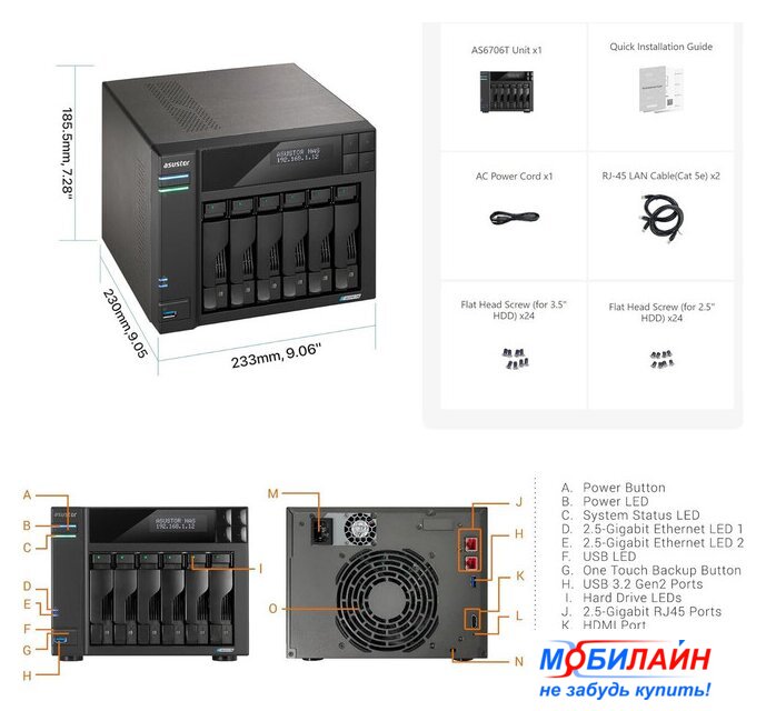 4 x 3.5"/2.5"/M.2 SATA 3.0/PCIe Gen3 x1, RAID 1/5/10/50/JBOD, hot swap, охлаждение пассивное, LAN 2x 2.5 Гбит/с, 2x USB-A 2.0, 2x USB-A 3.2 Gen2