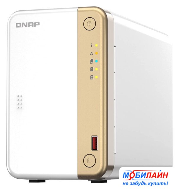 2 x 3.5"/2.5" SATA 3.0, RAID 1/JBOD, hot swap, охлаждение воздушное, LAN 2x 1 Гбит/с, 2x USB-A 3.2 Gen1