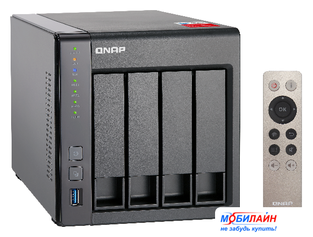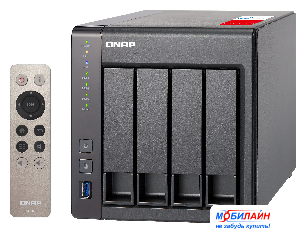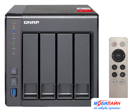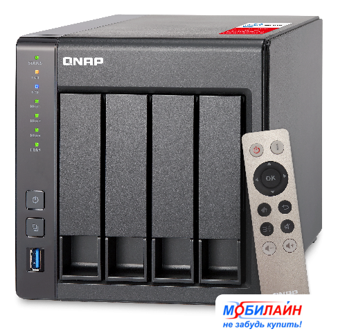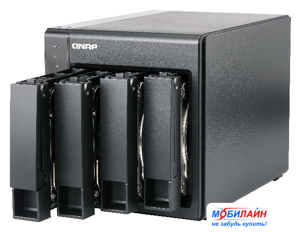 4 x 3.5"/2.5", RAID 1/5/5 + spare/6/6 + spare/10 + spare/JBOD, hot swap, охлаждение активное, LAN 2x2.5 Гбит/с + 2x10 Гбит/с, 4xUSB 3.0
