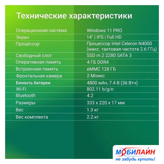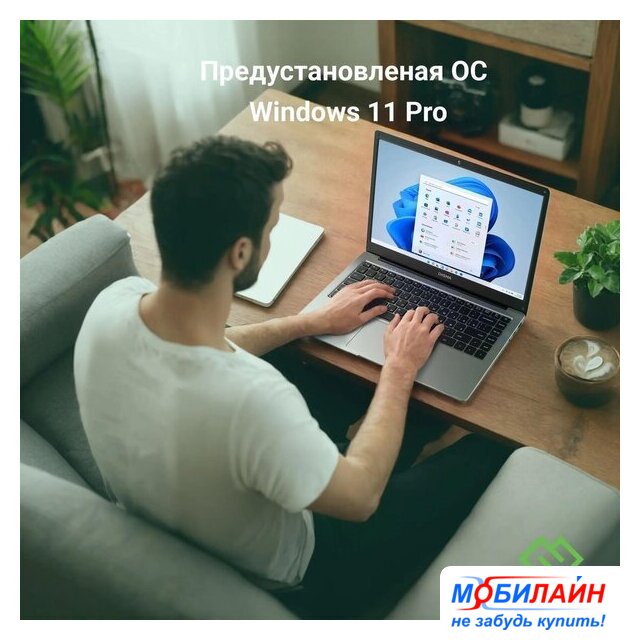 14.0" 1920 x 1080, IPS, 60 Гц, Intel Processor N100, 8 ГБ LPDDR5, SSD 256 ГБ, видеокарта встроенная, Windows 11 Pro, цвет крышки черный, аккумулятор 45.6 Вт·ч