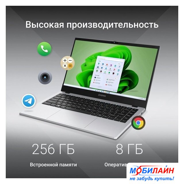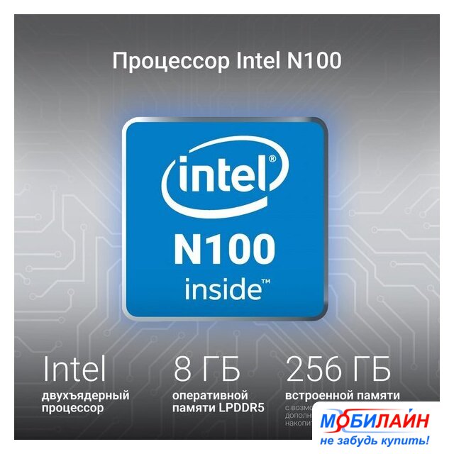 14.0" 1920 x 1080, IPS, 60 Гц, Intel Processor N100, 8 ГБ DDR4, SSD 256 ГБ, видеокарта встроенная, без ОС, цвет крышки серый, аккумулятор 38.5 Вт·ч