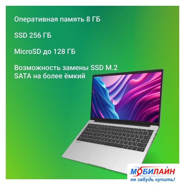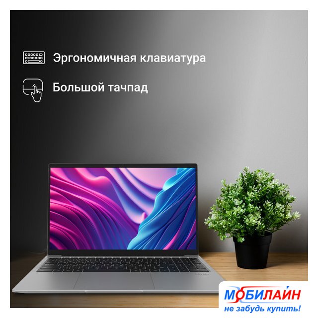 15.6" 1920 x 1080, IPS, 60 Гц, Intel Processor N100, 8 ГБ LPDDR5, SSD 256 ГБ, видеокарта встроенная, Windows 11 Home, цвет крышки серый, аккумулятор 38 Вт·ч