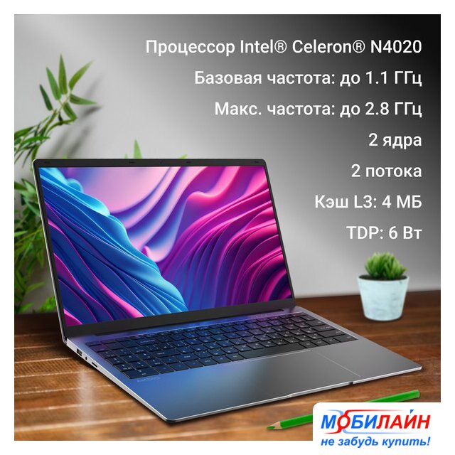 15.6" 1920 x 1080, IPS, 60 Гц, Intel Celeron N4020, 8 ГБ LPDDR4, SSD 256 ГБ, видеокарта встроенная, Windows 11 Home, цвет крышки серый, аккумулятор 38 Вт·ч