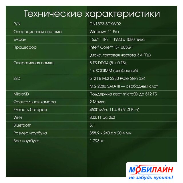 15.6" 1920 x 1080, TN+Film, 60 Гц, Intel Core i3 N305, 8 ГБ LPDDR5, SSD 256 ГБ, видеокарта встроенная, без ОС, цвет крышки серебристый, аккумулятор 50 Вт·ч