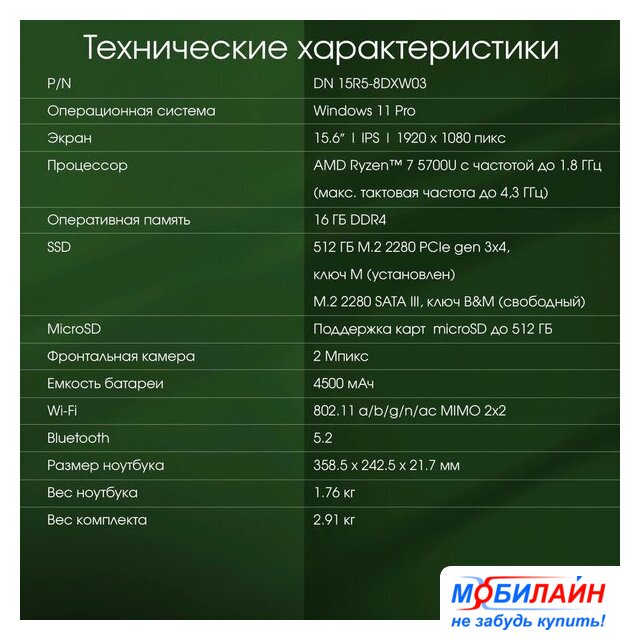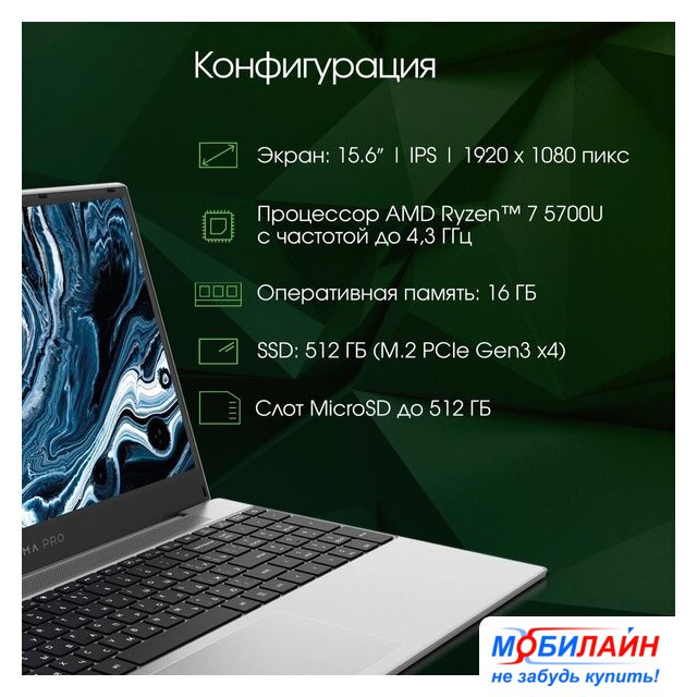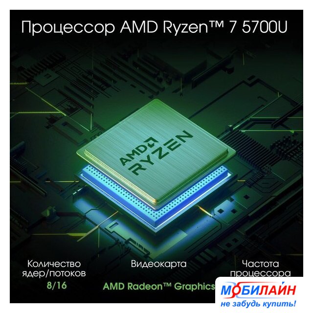 1920 x 1080 IPS, AMD Ryzen 7 5700U, 16 ГБ, SSD 512 ГБ, встроенная, Windows 11 Pro, цвет крышки серебристый