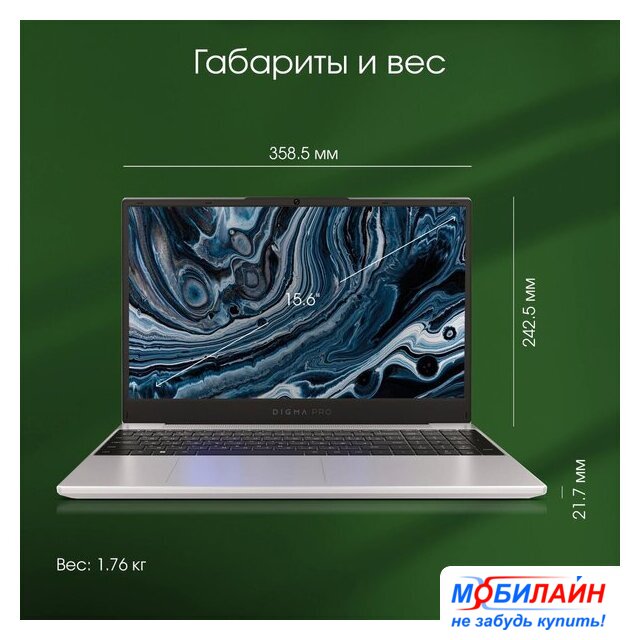 15.6" 1920 x 1080, IPS, 60 Гц, Intel Core i3 1315U, 16 ГБ DDR4, SSD 512 ГБ, видеокарта встроенная, Windows 11 Pro, цвет крышки серебристый, аккумулятор 42 Вт·ч