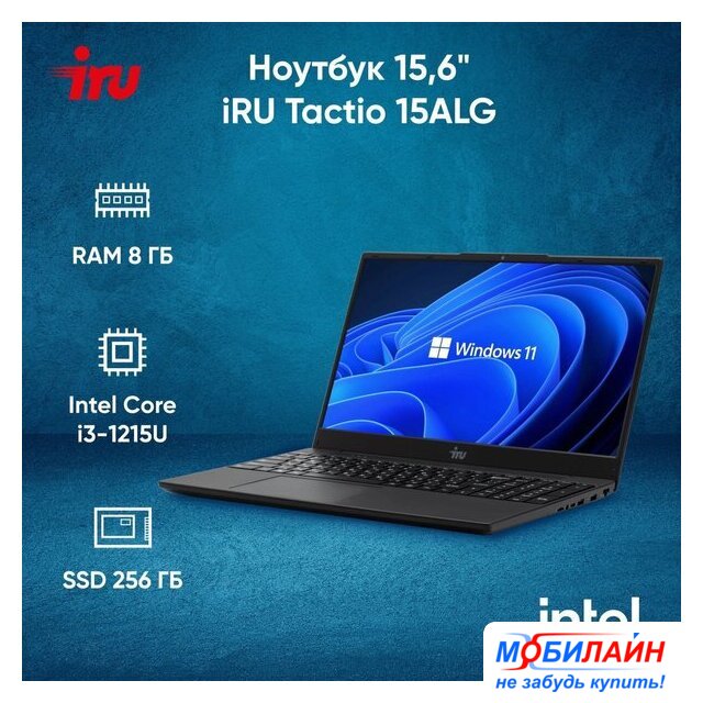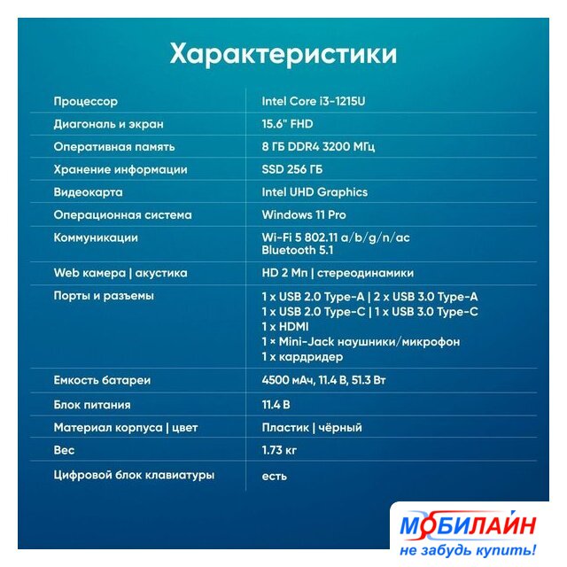 1920 x 1080 IPS, Intel Core i3 1215U, 8 ГБ, SSD 256 ГБ, встроенная, Windows 11 Pro, цвет крышки черный