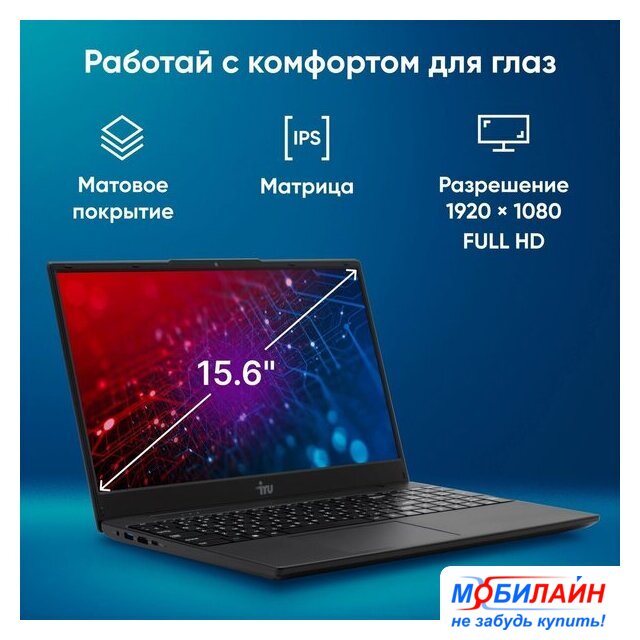 1920 x 1080 IPS, Intel Core i3 1215U, 16 ГБ, SSD 512 ГБ, встроенная, Windows 11 Pro, цвет крышки черный