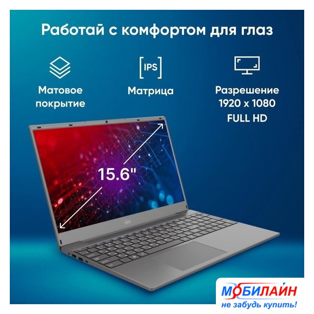 15.6" 1920 x 1080, IPS, 60 Гц, Intel Core i3 1215U, 8 ГБ DDR4, SSD 256 ГБ, видеокарта встроенная, без ОС, цвет крышки серый, аккумулятор 45 Вт·ч