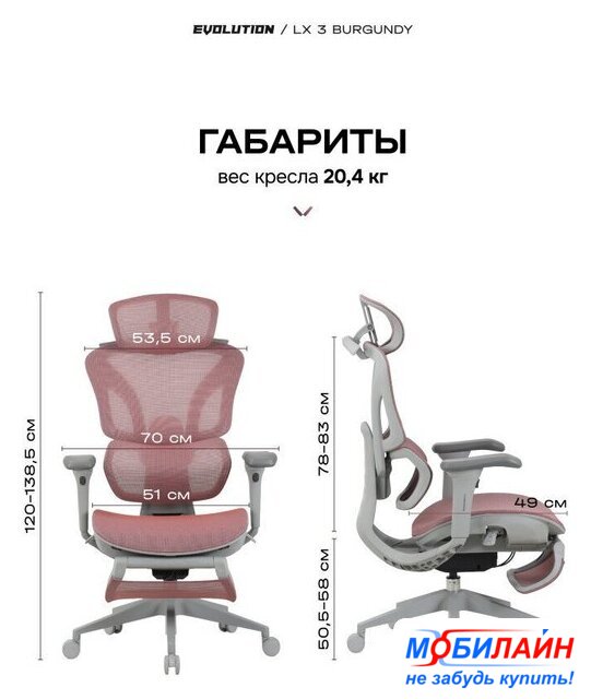 Высота кресла | 120 — 138.5 см |