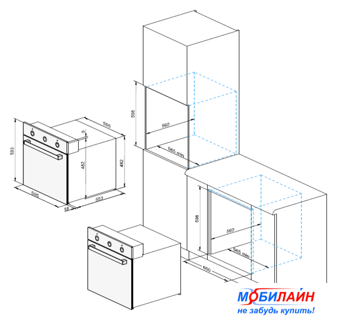 электрический с конвекцией, объем 77 л, утапливаемые переключатели, 9 режимов, очистка ручная, 3 стекла в дверце, направляющие проволочные + телескопические (1 уровень)