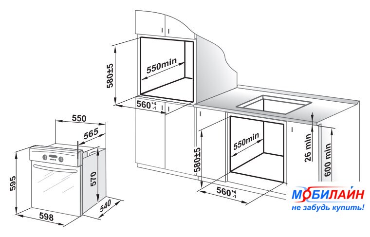 электрический с конвекцией, объем 55 л, 5 режимов, очистка ручная, проволочные направляющие, телескопические направляющие, энергопотребление A