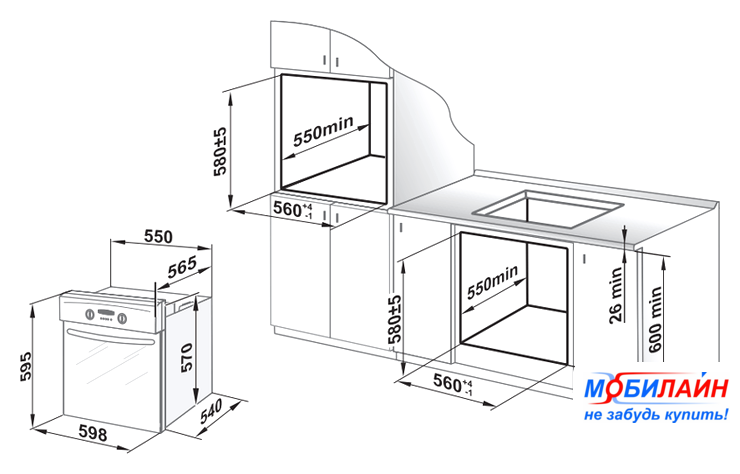 электрический с конвекцией, объем 60 л, 8 режимов, очистка ручная, проволочные направляющие