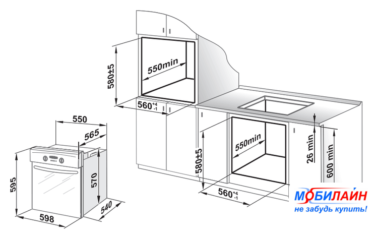 электрический с конвекцией, объем 60 л, 8 режимов, очистка ручная, проволочные направляющие, энергопотребление A