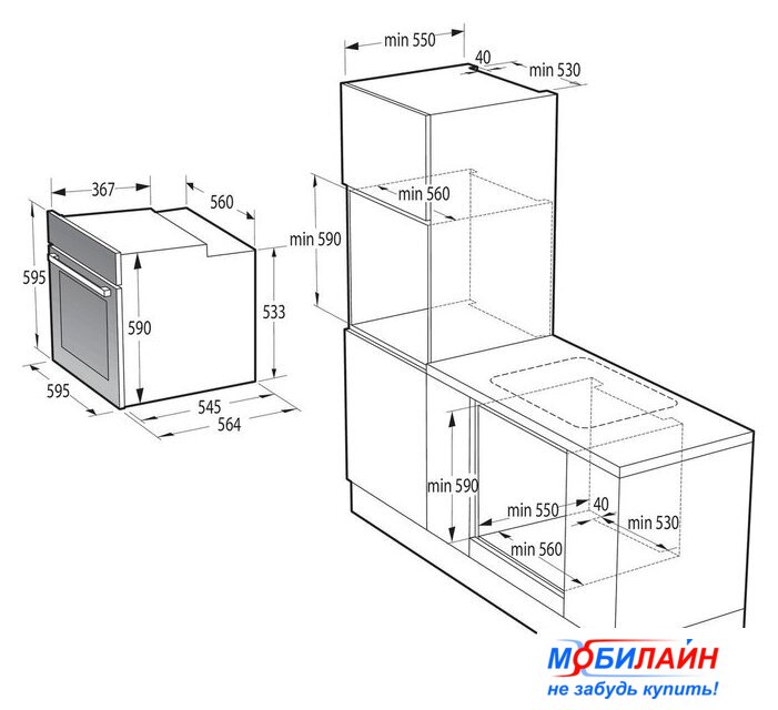 электрический с конвекцией, объем 60 л, 8 режимов, очистка ручная, проволочные направляющие, энергопотребление A