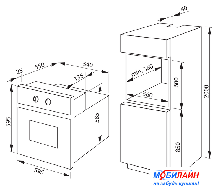 электрический с конвекцией, объем 55 л, 7 режимов, очистка паровая, 2 стекла в дверце, направляющие проволочные + телескопические (1 уровень)