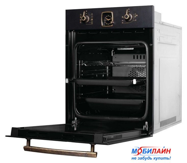 электрический с конвекцией, объем 67 л, ретродизайн, 8 режимов, очистка каталитическая, 3 стекла в дверце, направляющие проволочные + телескопические (1 уровень)