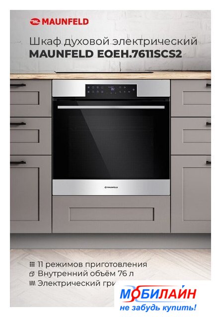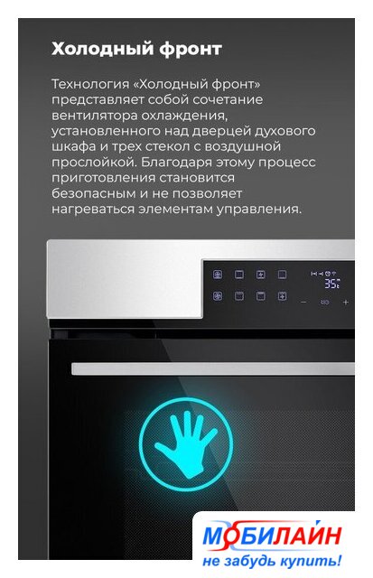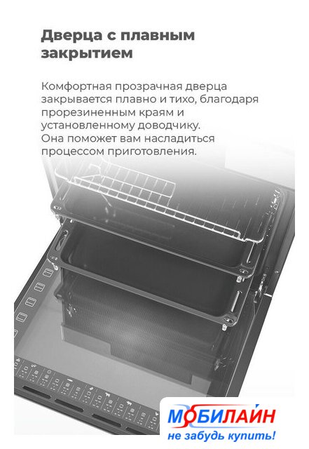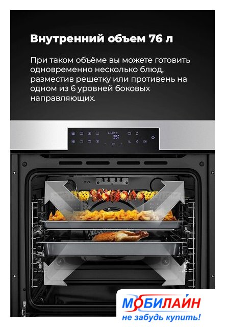 электрический с конвекцией, объем 65 л, утапливаемые переключатели, 8 режимов, очистка каталитическая, 2 стекла в дверце, направляющие проволочные + телескопические (1 уровень)