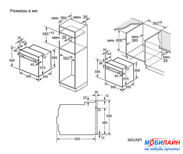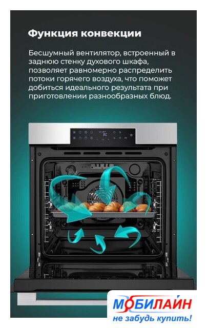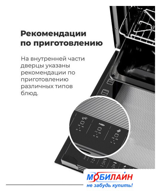 электрический с конвекцией, объем 60 л, 6 режимов, очистка ручная, энергопотребление A