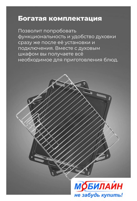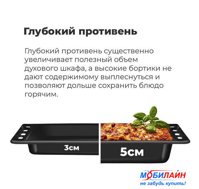 Комплектация | стандартный противень, глубокий противень, решетка, приспособление для извлечения противней |